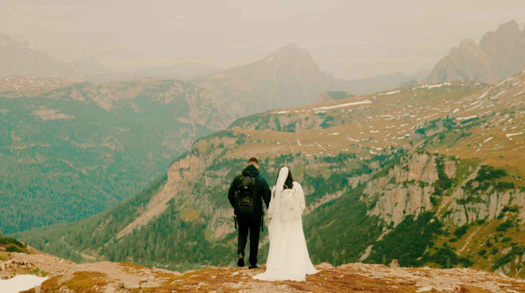 By the time we reached the top, the cold morning air had settled in, but the energy shifted as the first light started to hit the peaks. Mia and Kos had their first look as the mountains lit up around them. No rush, no audience, just a quiet moment before exchanging vows in one of the most unreal settings you could ask for.