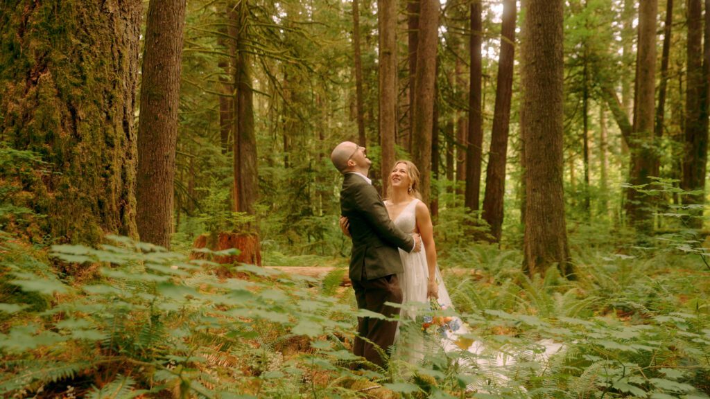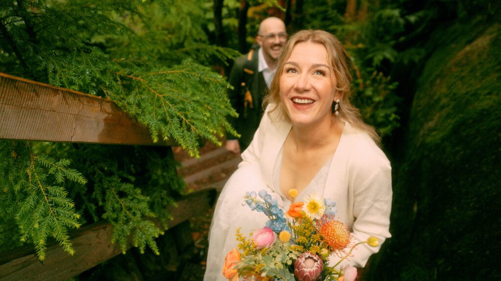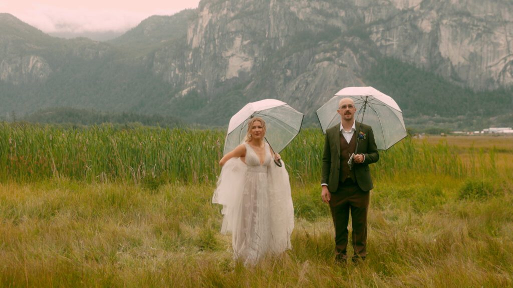 From there, we drove to their ceremony location, a quiet spot in Squamish that they had completely to themselves. The rain held off just long enough for them to share their vows surrounded by the landscape they had chosen, with no one else around and no distractions. Not long after, the weather shifted again and the rain set in properly, but by then the important part had already happened, and we simply worked with the conditions rather than against them, which is often part of planning an outdoor elopement in British Columbia.